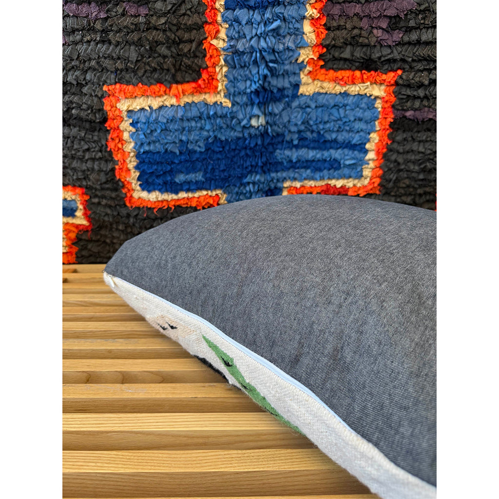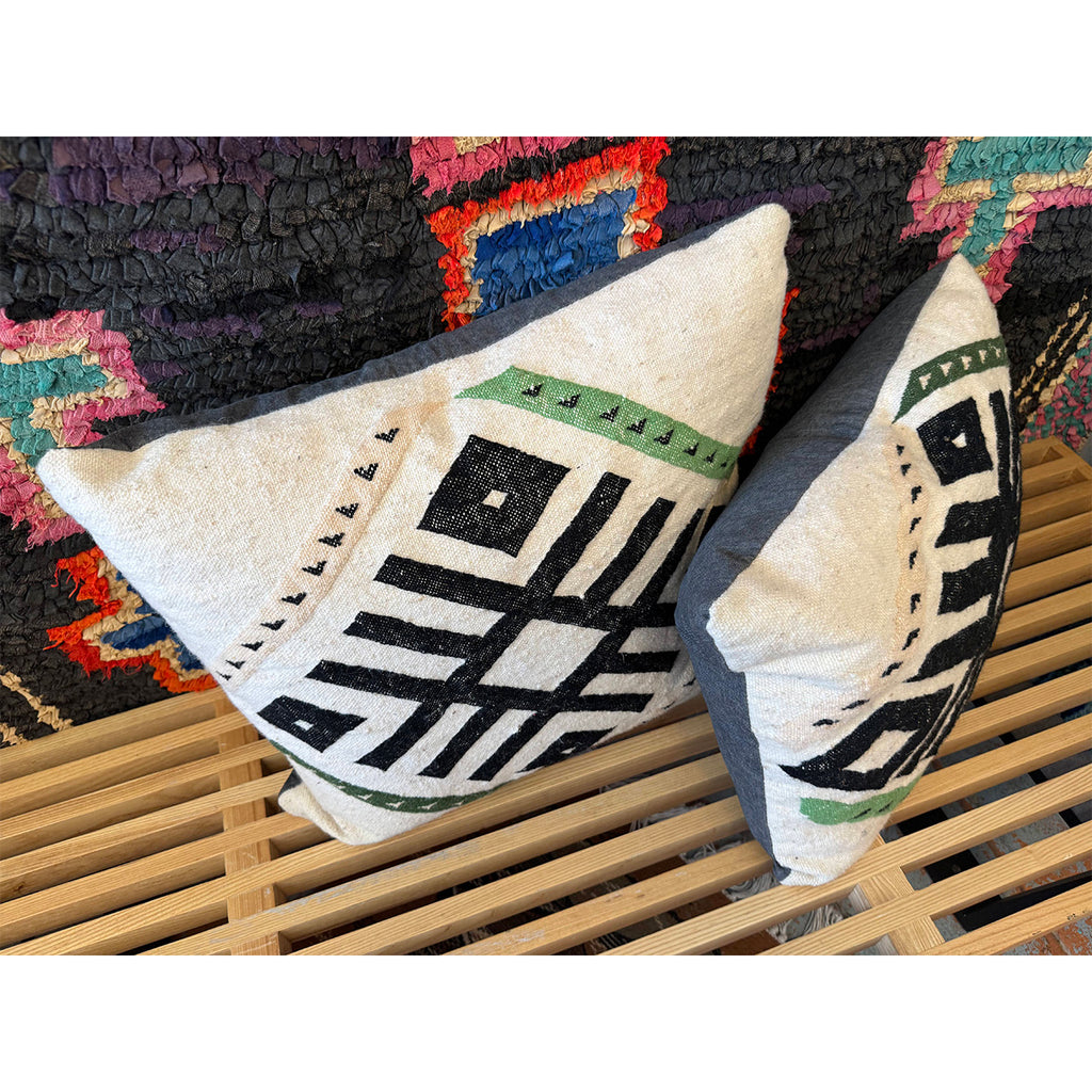 This pillow is one of a set of two pillows made from a custom rug that we had ordered from artisans in the Middle Atlas mountains.