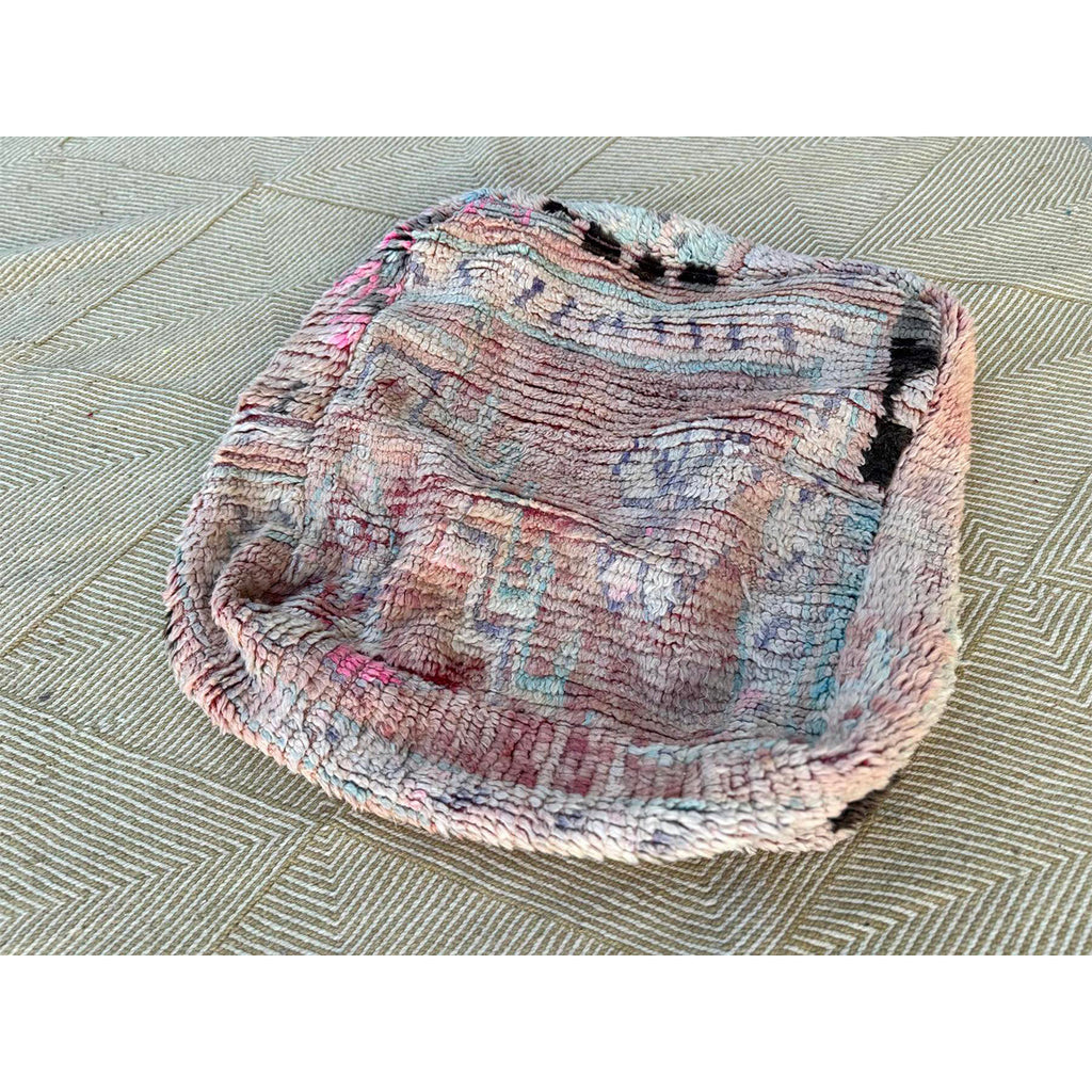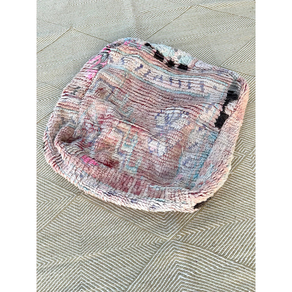 This pouf is made by Jamal and Kamal, from a vintage Moroccan rug. Stack two of them together for added height, or just use one as a meditation pillow, or low floor pouf