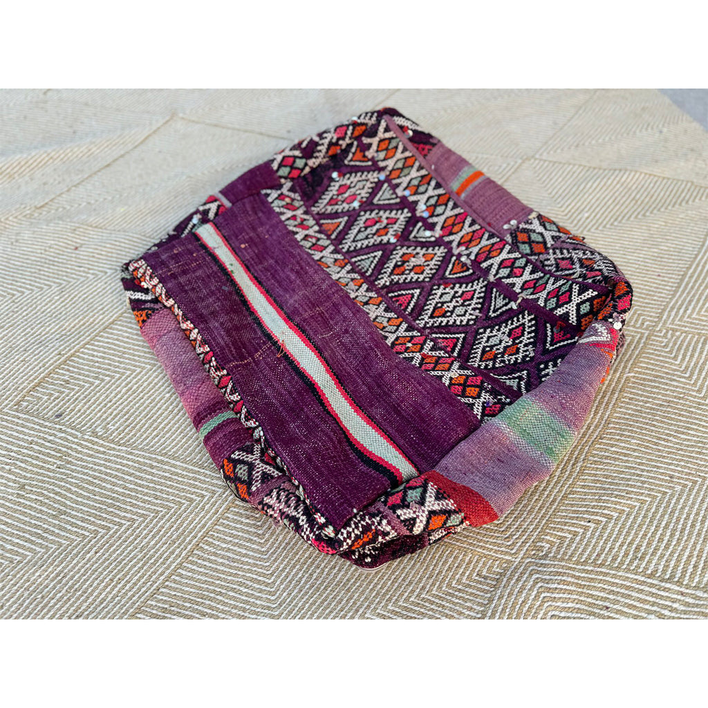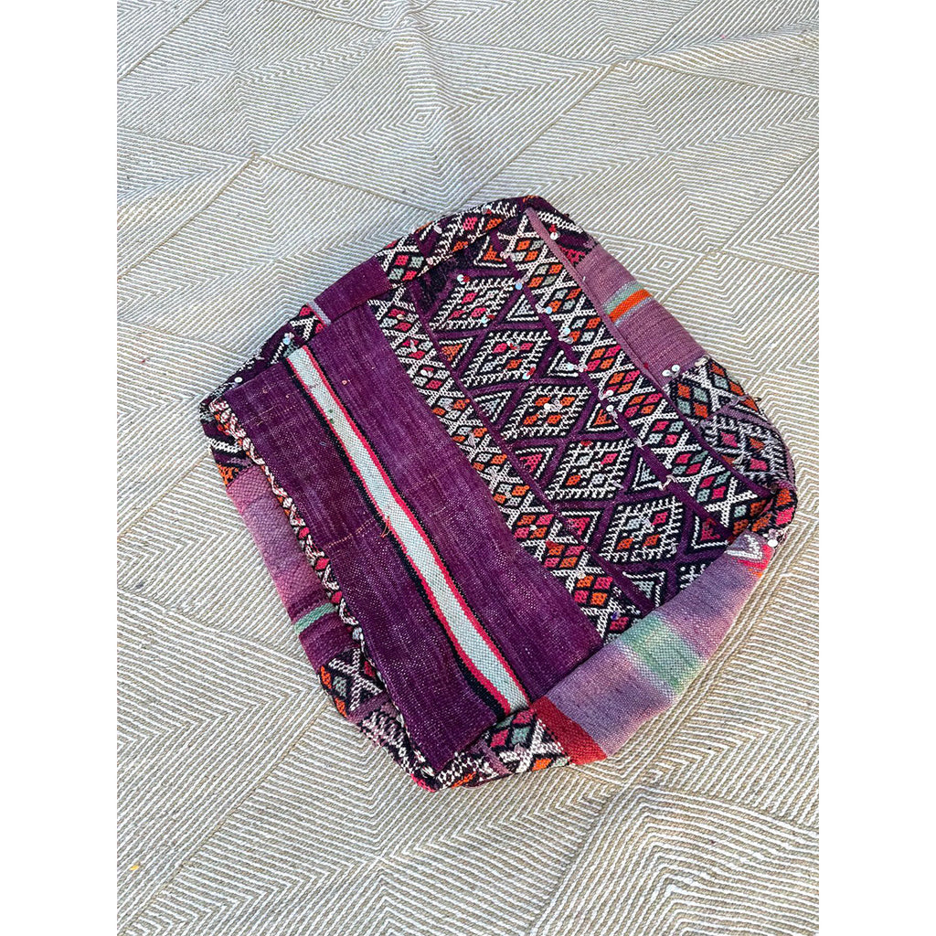 This pouf is made by Jamal and Kamal, from a vintage Moroccan rug. Stack two of them together for added height, or just use one as a meditation pillow, or low floor pouf