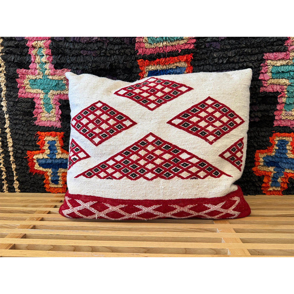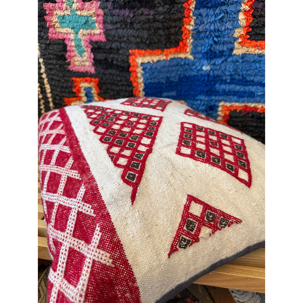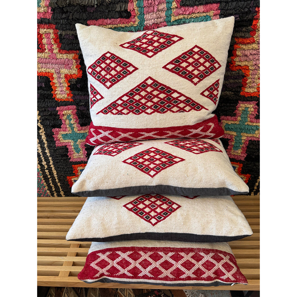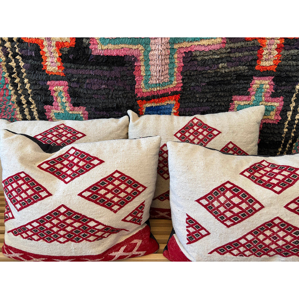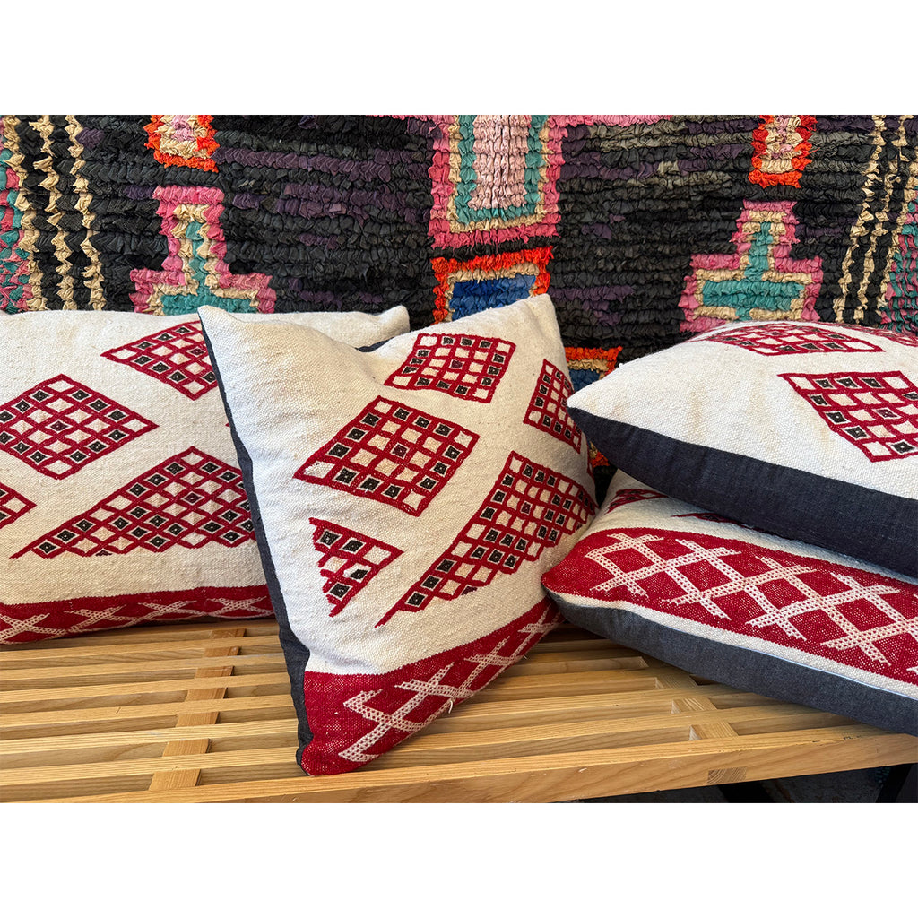 When we first started custom designing rugs from our artisan partners in Morocco, we started with these pillows. We had them weave these mini rugs that we would then turn into pillows in the US. This was our first collaboration with the artisans and it paved the way for much of our future custom design work. It was a fun experiment that resulted in these bold and beautiful pillows, made from Moroccan flat-weave kilim rugs from the Middle Atlas region. All pillows are equipped with invisible zipper, which makes it easy to remove the pillow insert and clean the pillow case.