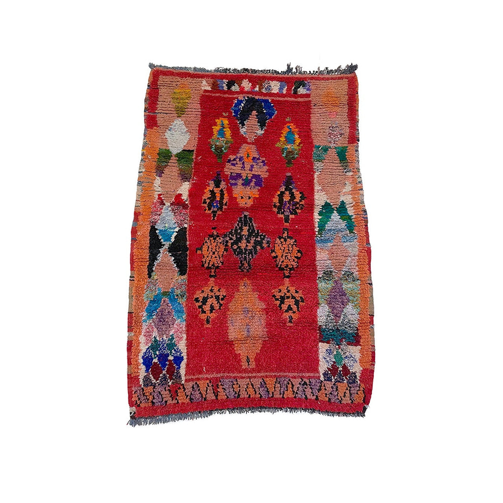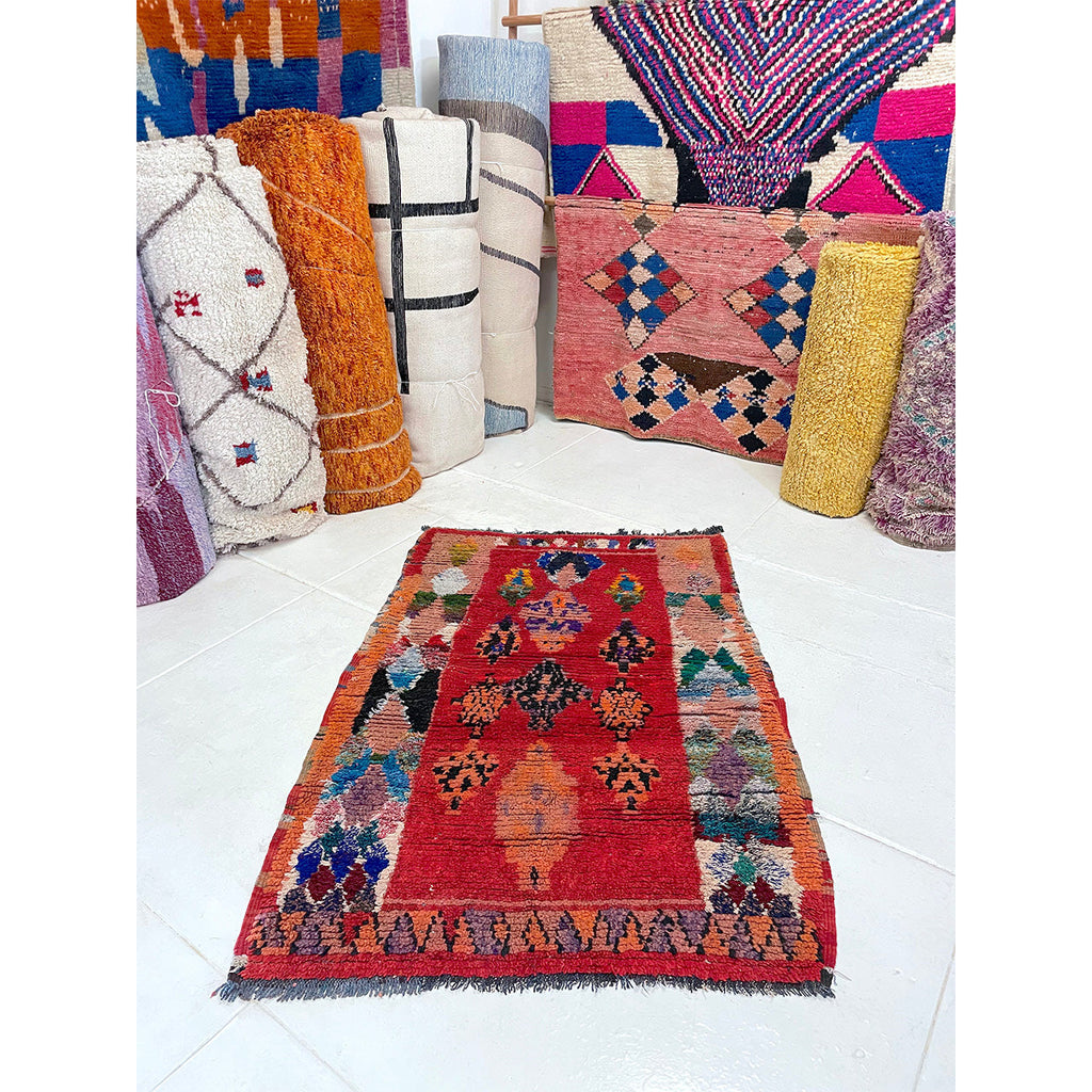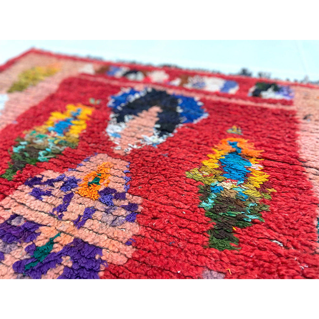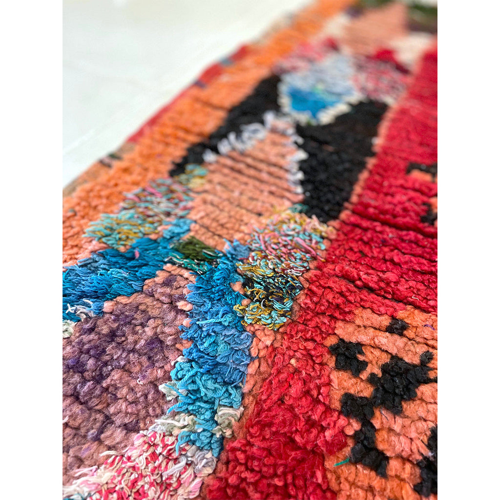 Colorful rugs are no match for this vintage Moroccan boucherouite. The blend of colors and designs are particularly striking on this piece. Boucherouites gained notoriety as rag rugs and often feature a mix of cotton and wool. Because of their cotton fibers, they're slightly easier to clean than wool rugs, which make them great rugs for kitchens, bathrooms, or for kids' rooms. Or give this beauty prime real estate in the entryway to greet all your guests.