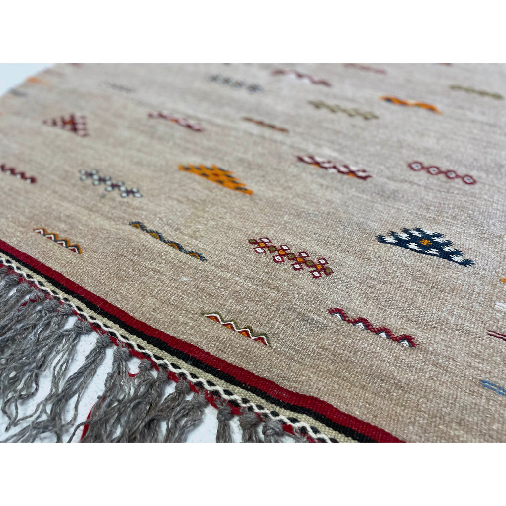 The simplest, time-tested method is straight from Morocco: hang your rug in the sun for a few hours, then shake it out well before bringing it back inside. This regular airing out is the best way to keep your rug fresh and dust-free. Beyond that, care depends on the rug’s material and construction. For instance cotton boucherouites are the easiest to clean - just throw them in the washing machine on a gentle cycle and air dry. Longer pile rugs should be vacuumed with care. Be sure to turn off the rotating brush or switch to the “carpet” setting before vacuuming the top side. For more information click here.