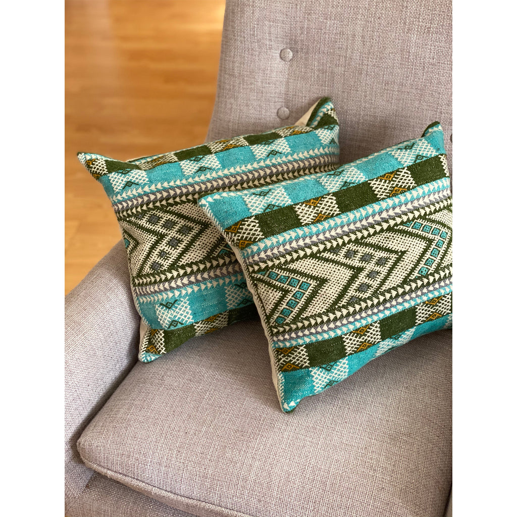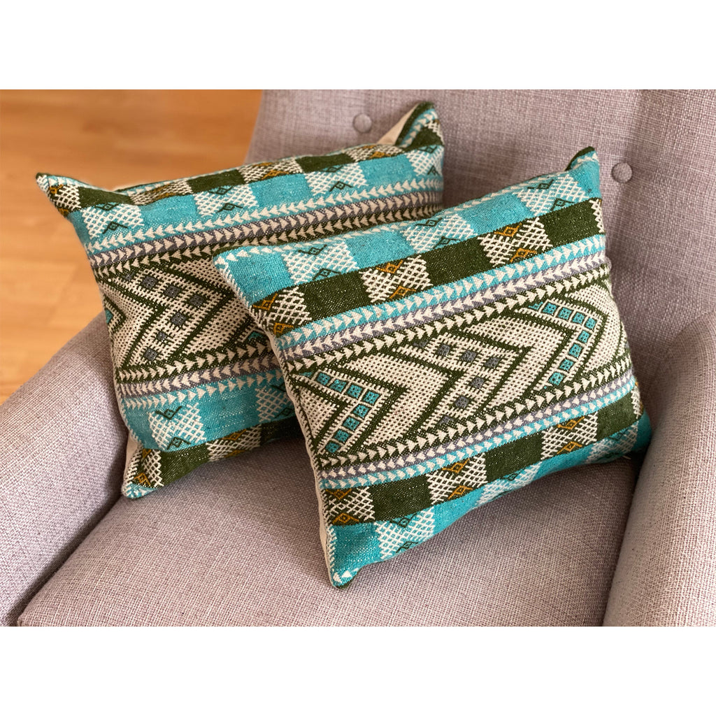These bright teal colors bring energy to any room they inhabit. They're intricately woven with a lively design. They're the perfect accent pillow for any couch or as the crown jewel pillow on your bed.